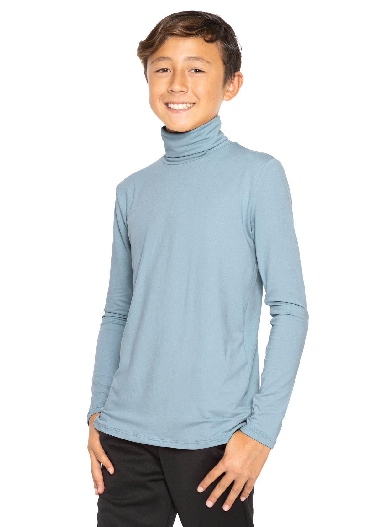 Our Oh So Soft Boy's Long Sleeve Stretch Turtleneck is a customer favorite built for comfort, durability, and everyday wear. Crafted from our bestselling ultra-soft polyester/spandex blend, it offers breathable 4-way stretch that moves easily with active kids. The fold-over turtleneck is warm yet non-restrictive, making it ideal for layering during colder months or wearing on its own. With its soft feel, easy care, and reliable fit, this style is a go-to piece for school, events, and casual outfits—an easy-to-sell essential with strong reorder potential.
