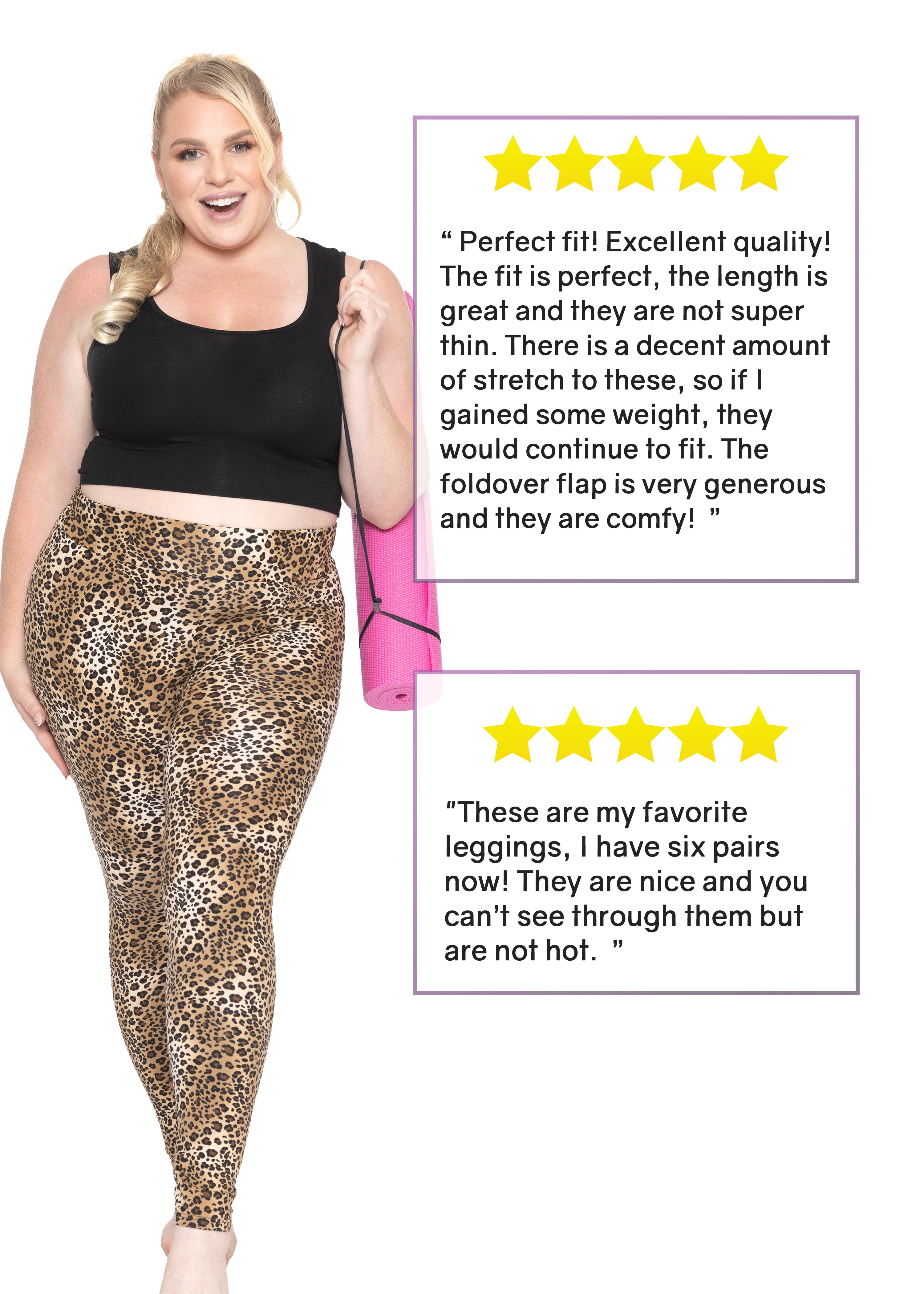 The adjustable foldover waistband can be worn higher or lower on the waist for a customized fit. These leggings are non-sheer and perfect for everyday wear.