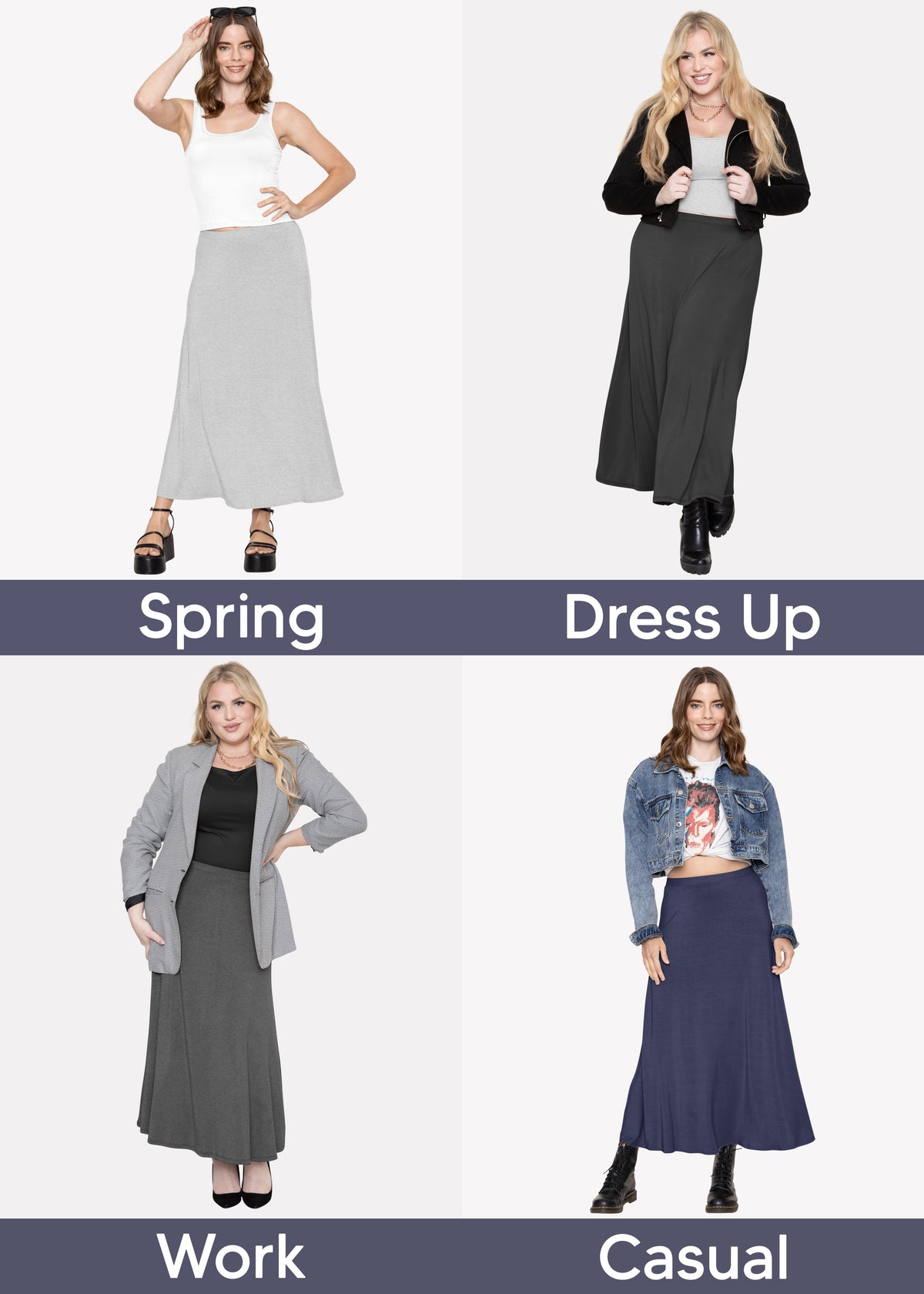 A proven wardrobe staple with strong sell-through and repeat purchase potential. This ankle-length A-line skirt features buttery-soft, four-way stretch fabric that’s breathable, moisture-wicking, and non-see-through — ideal for everyday comfort and ease. Its seasonless design offers year-round wear: on its own, with biker shorts in warmer months, or layered over leggings in colder seasons. A modest, high-demand style that appeals across age groups and drives multi-unit buys.