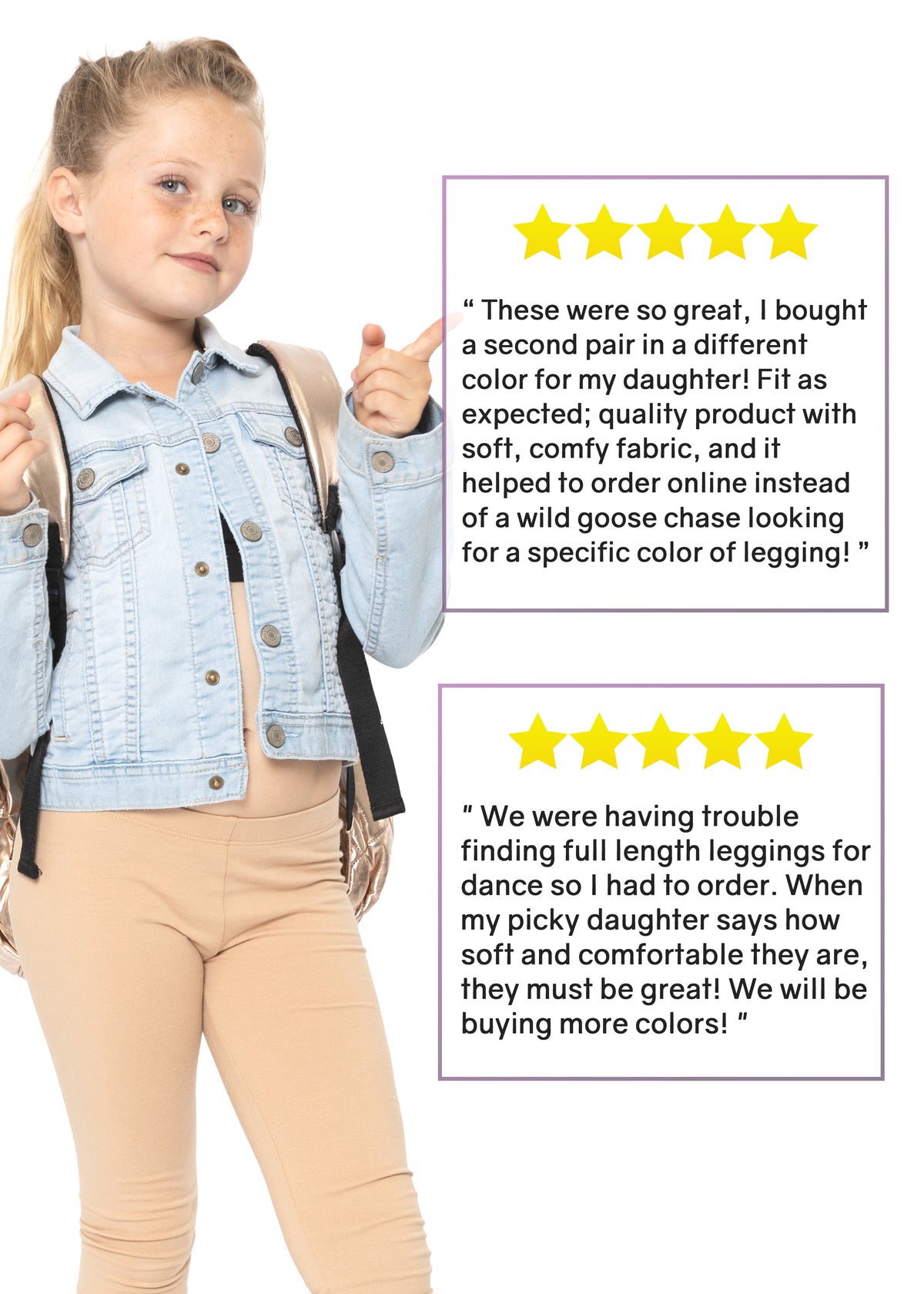 A high-volume essential with strong repeat sales. These best-selling girls’ cotton leggings feature a 1-inch elastic waistband that stays in place through active play and busy school days. Easy to pull on and off — ideal for independent dressers and parents on the go. Made with ultra-soft, breathable 4-way stretch fabric, perfect for sensitive skin and sensory-friendly comfort. Available in 35+ colors, making them a reliable year-round staple for everyday wear, uniforms, and layering. A must-have basic that encourages multi-color, multi-pair buys.