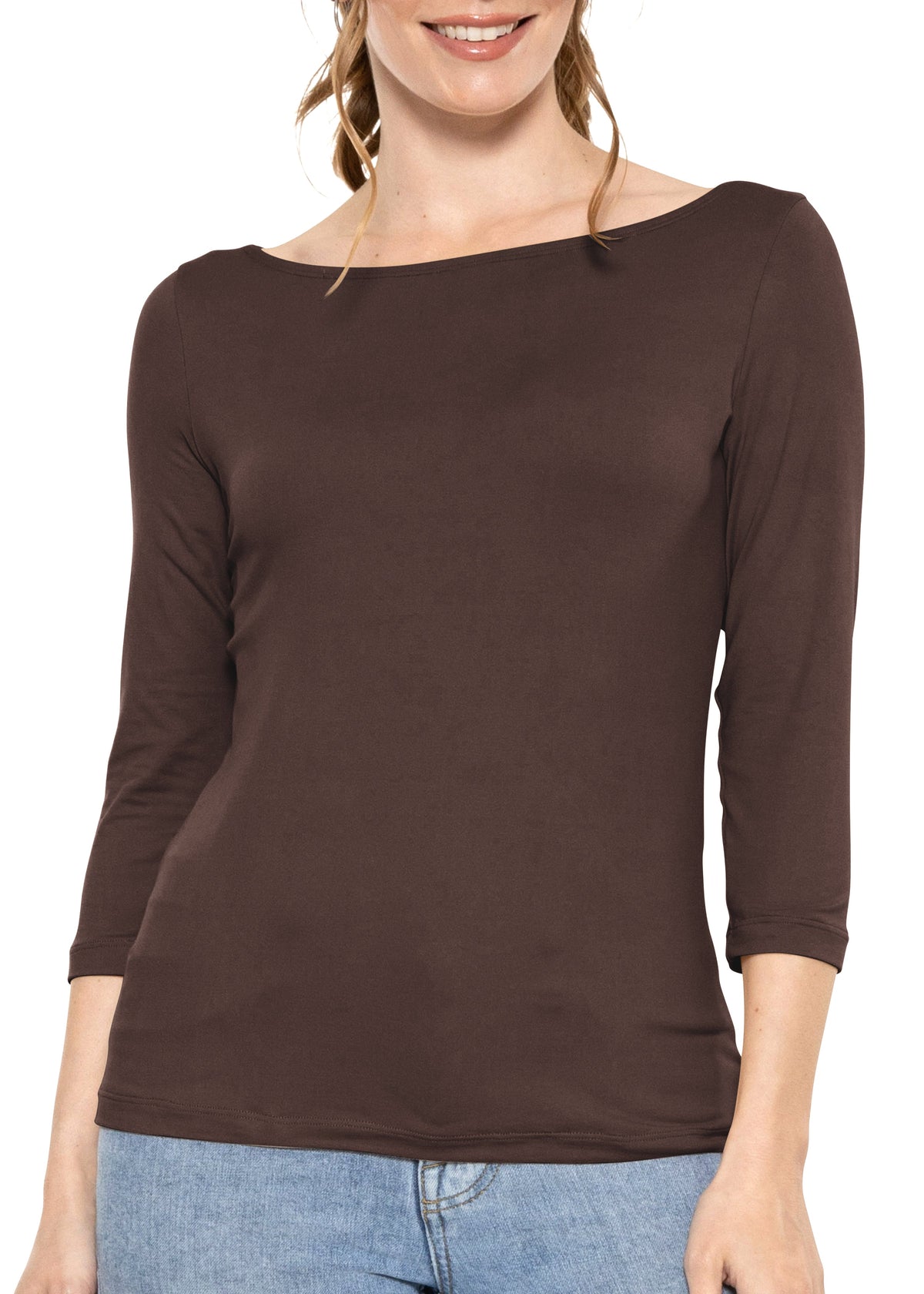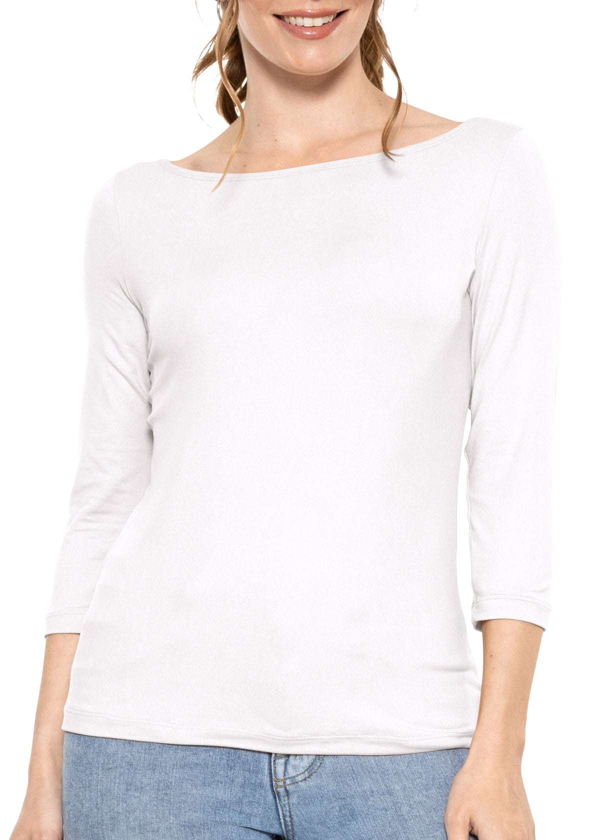 Women's and Plus Oh So Soft ¾ Sleeve Boat Neck Top