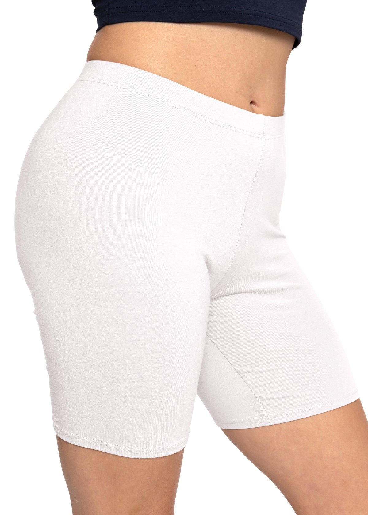 These versatile biker shorts are perfect for everyday wear, as a base layer, or under skirts and dresses. Designed with an elastic waistband for a secure pull-on fit, they stay in place during activity and are not see-through. The ultra-soft fabric makes them ideal for daily use.