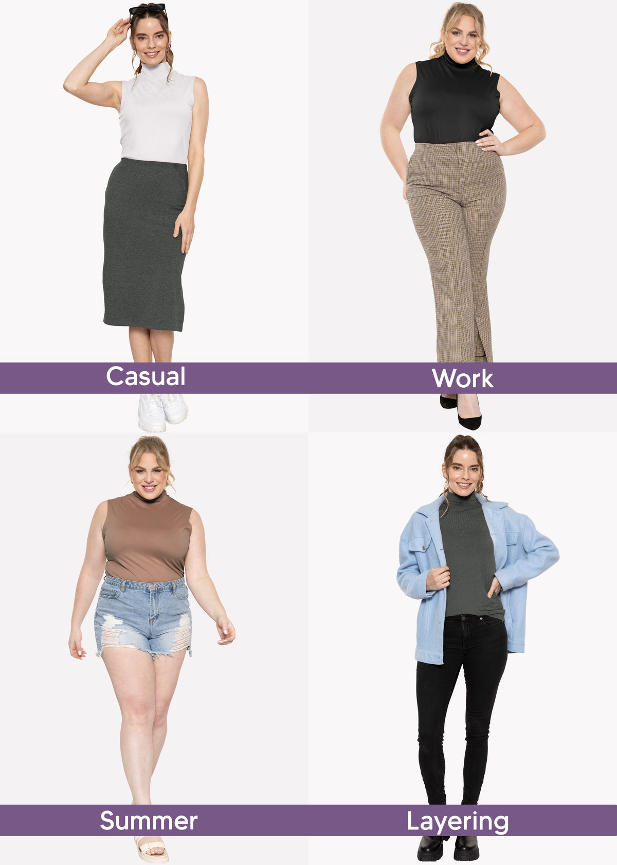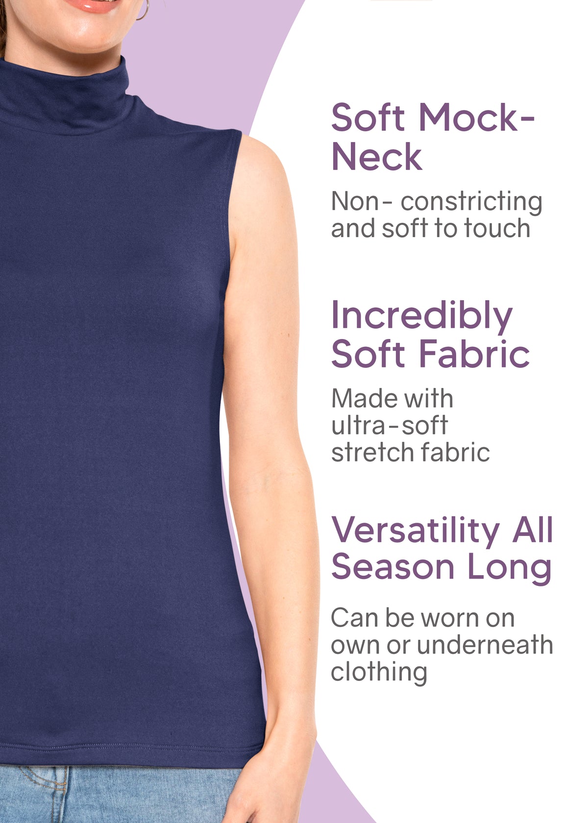 Meet your new favorite go-to piece! Our Women's and Plus Oh So Soft Sleeveless Mock Turtleneck Top is designed for everyday comfort and style. Made from our luxuriously soft 95% Polyester / 5% Spandex 4-way stretch knit, this sleeveless top features a mock neck and relaxed fit that flatters every shape.